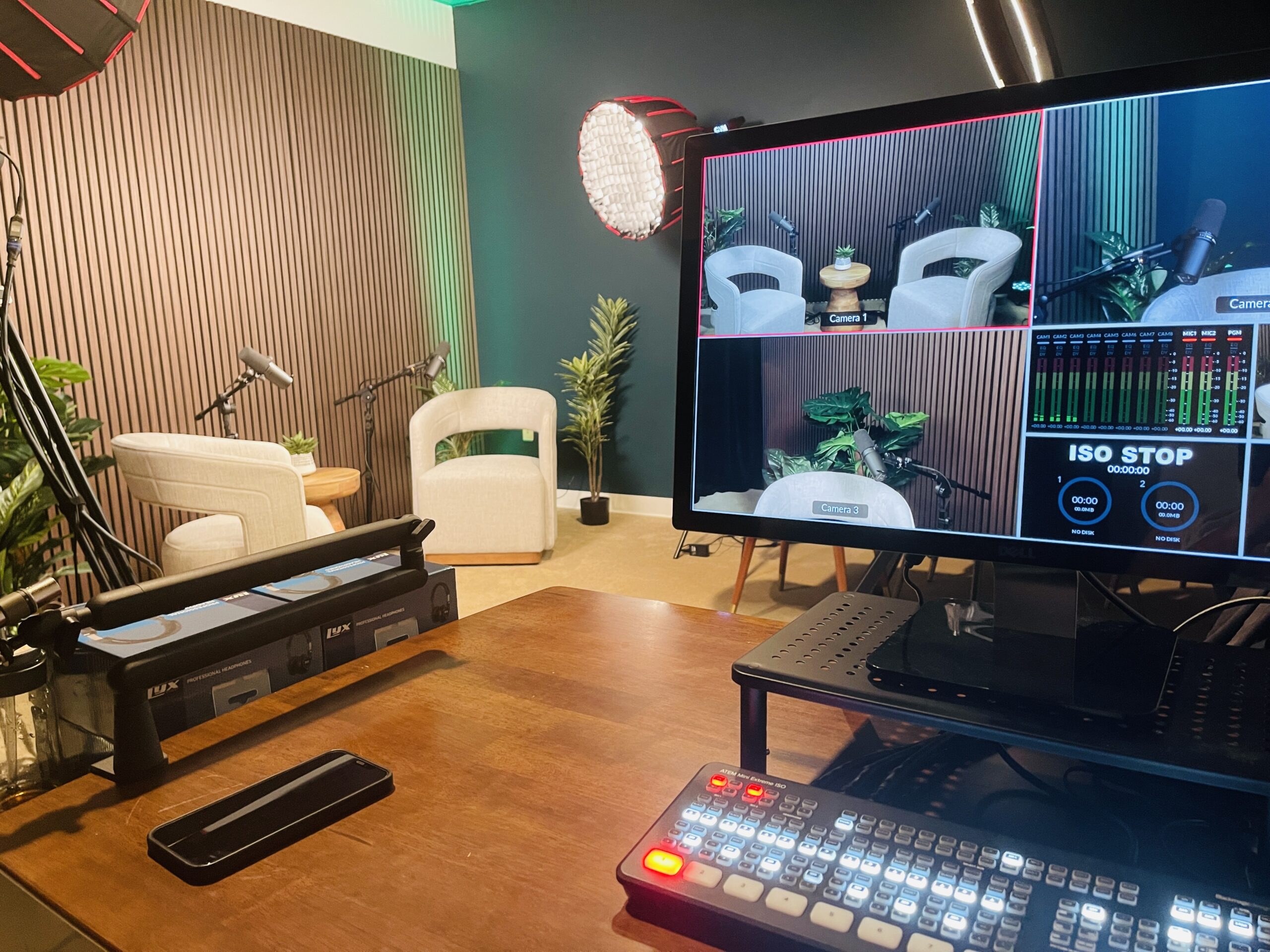 Ideal for individual creators or pairs, our Small ISO Room is the ultimate choice for your solo podcast recordings, voice-overs, and intimate audio projects. This cozy space, designed for 1-2 people, provides the perfect environment for clear, crisp sound quality. Equipped with microphones and a ring light, it ensures that both your audio and visual needs are met. Whether you’re starting a new podcast or working on a voice-over, our ISO room is a great option.